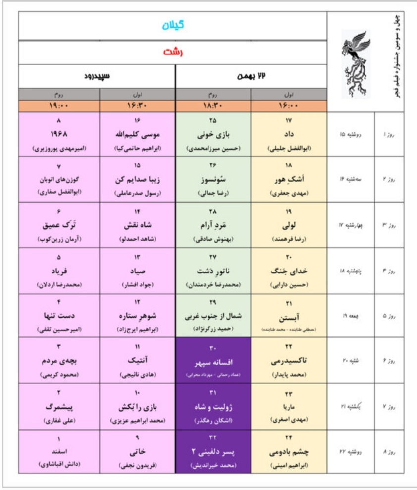 جدول اکران فیلم های فجر در گیلان منتشر شد