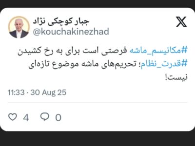 به گزارش آژانس خبری ریحان؛جبار کوچکینژاد، نماینده مردم رشت در مجلس شورای اسلامی، در توییتی با اشاره به تحریمهای موسوم به «ماشه» تأکید کرد که این موضوع تازگی ندارد و جمهوری اسلامی میتواند از آن به عنوان فرصتی برای به رخ کشیدن قدرت نظام استفاده کند. وی با هشتگهای #مکانیسم ماشه و #قدرت نظام، بر آمادگی کشور در برابر فشارهای بینالمللی تأکید کرد.